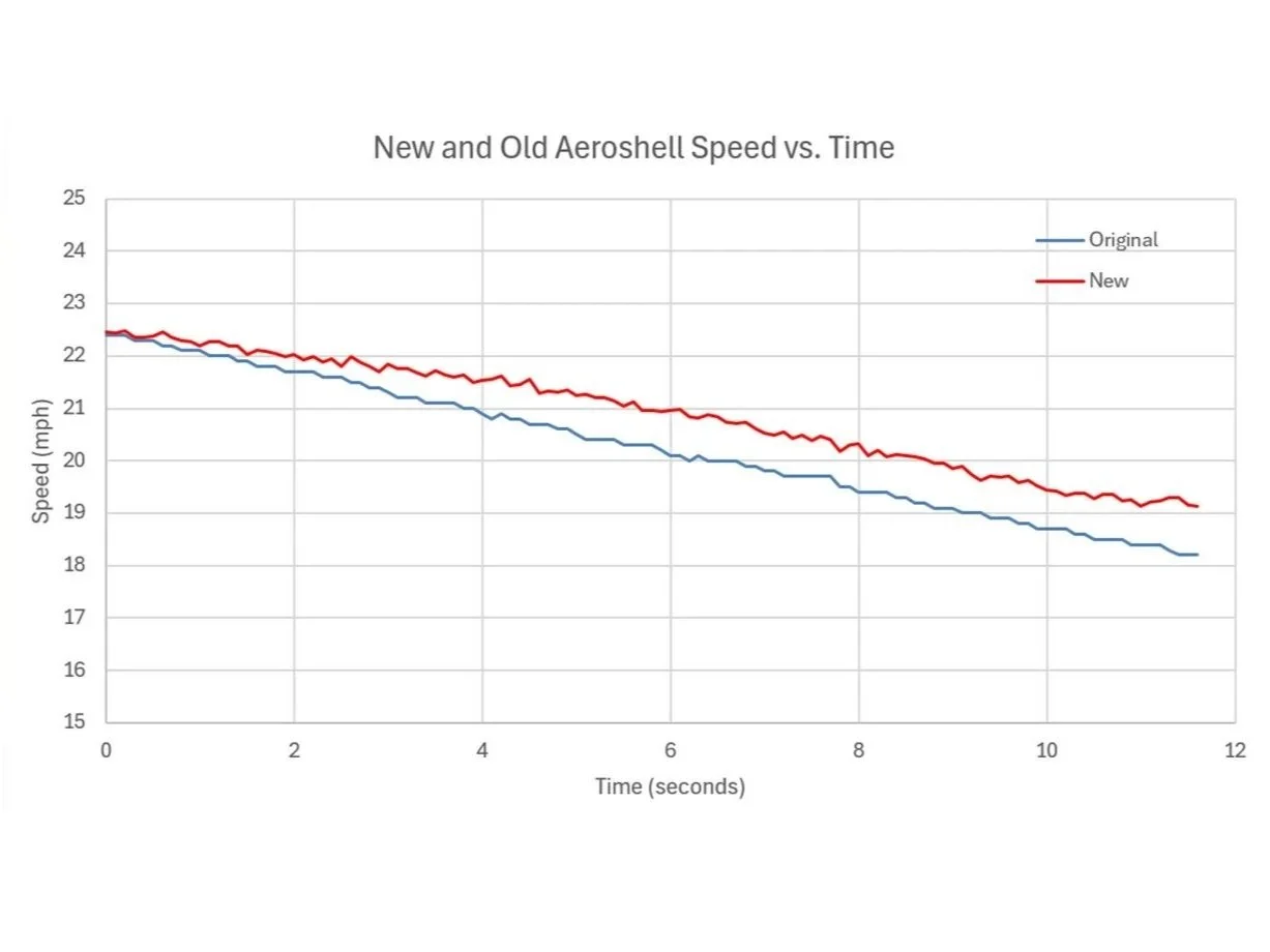 • Coast-down testing confirmed a significant reduction in aerodynamic drag reflected by a measurable decrease in deceleration rate