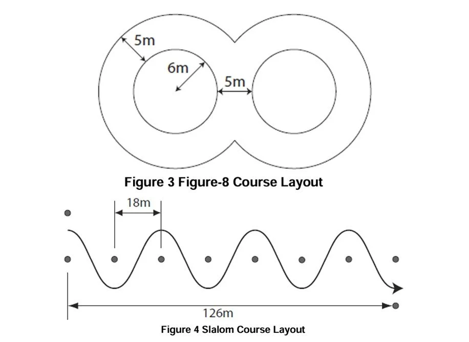 • Executed course setups per ASC geometry (Figure-8 cones, 18 m slalom spacing) and prepared the braking zone with controlled wetting for repeatable wet-stop runs